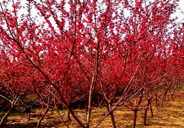 它的花色非常艷麗,姿態有很美麗,在加上綠葉的襯托,紅綠相間形成一道亮麗的風景;除此之外它既可以單獨的獨展風姿,也可以成片的栽植構成碧桃林,不同的栽種方法會起到不同的效果。