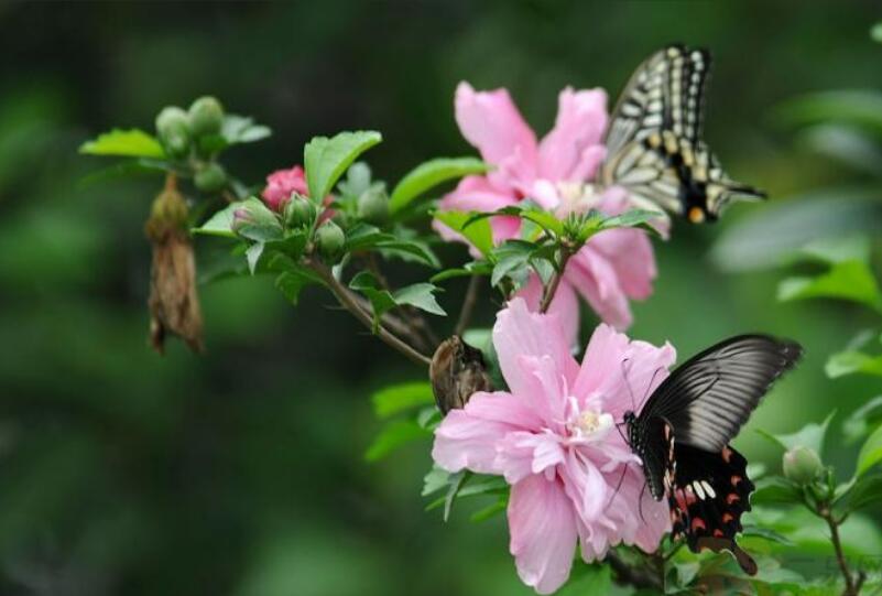 木槿花一般在6月份開花,一直能持續(xù)到10月份。木槿花的顏色比較多,有粉紅、紫紅、白色等,而且其花瓣也比較多,有的是單瓣的,有的是復瓣的,其形狀為鐘形,花瓣為卵形。