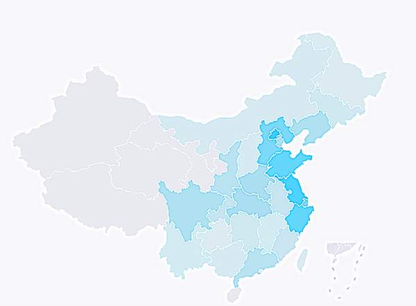 下圖是棣棠產(chǎn)地在中國的分布圖,分布越多地圖顏色越深。