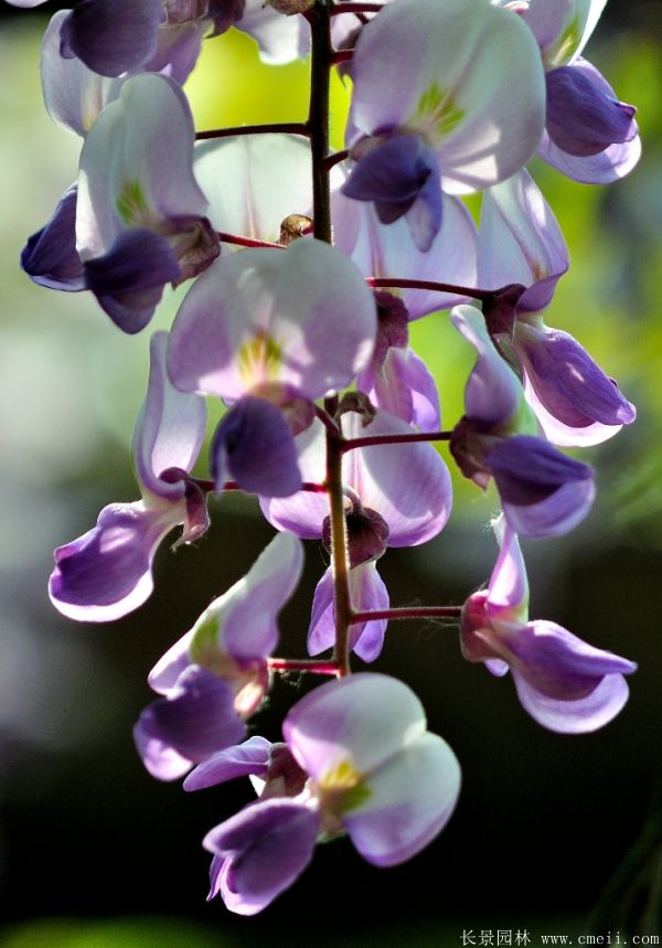 紫藤,植株高0.5~1.9米高上下,樹葉開花的形態按照種類有區別有區別,有的較為細長,有的接近橢圓,紫藤花蕾色調是豐富,如淺紅,粉紅色,淺黃色,淺白色等,開花的時間非常長,花量大,每年的是花開的季節時間從6月中旬到8月下旬,種子9~10月熟透,有較高的發芽能力。